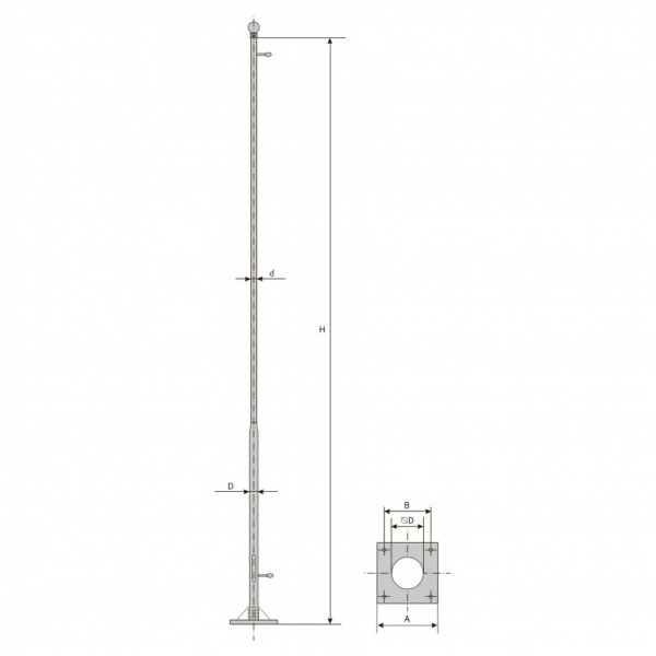 Для создания флагштоков этого типа используется стальная труба с гладкой отделкой. Учитывая, что изделие будет эксплуатироваться на открытом воздухе, необходимо обеспечить надежную защиту от коррозии и других неблагоприятных воздействий. Эту защиту обеспечивает горячее цинкование, проводимое на этапе производства. При желании клиента поверхность столбов может быть дополнительно окрашена лакокрасочными составами.