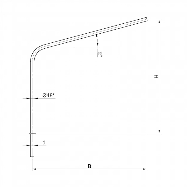 Однорожковые кронштейны К2-1,0-1,5-1-1 предназначен для крепления светильника на трубчатой опоре освещения. Завод опор освещения «Альдекс» изготавливает однорожковые консольные кронштейны из стального проката. Собственное производство позволяет выполнять изделия надлежащего качества и в кратчайшие сроки. Конструкция однорожковых кронштейнов К2-1,0-1,5-1-1. Конструкция консольных однорожковых кронштейнов К2-1,0-1,5-1-1 представляет собой гнутую металлическую трубу заданных размеров.