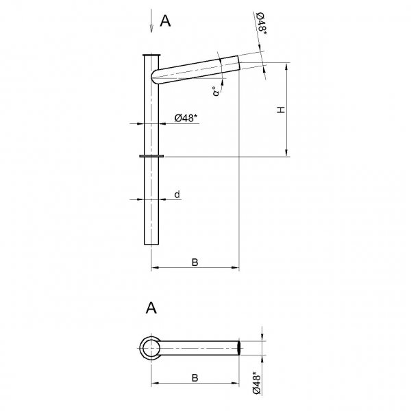 Однорожковые кронштейны К20-0,2-0,5-1-1 предназначен для крепления светильника на трубчатой опоре освещения. Завод опор освещения «Альдекс» изготавливает однорожковые консольные кронштейны из стального проката. Собственное производство позволяет выполнять изделия надлежащего качества и в кратчайшие сроки. Конструкция однорожковых кронштейнов К20-0,2-0,5-1-1. Конструкция консольных однорожковых кронштейнов К20-0,2-0,5-1-1 представляет собой гнутую металлическую трубу заданных размеров.